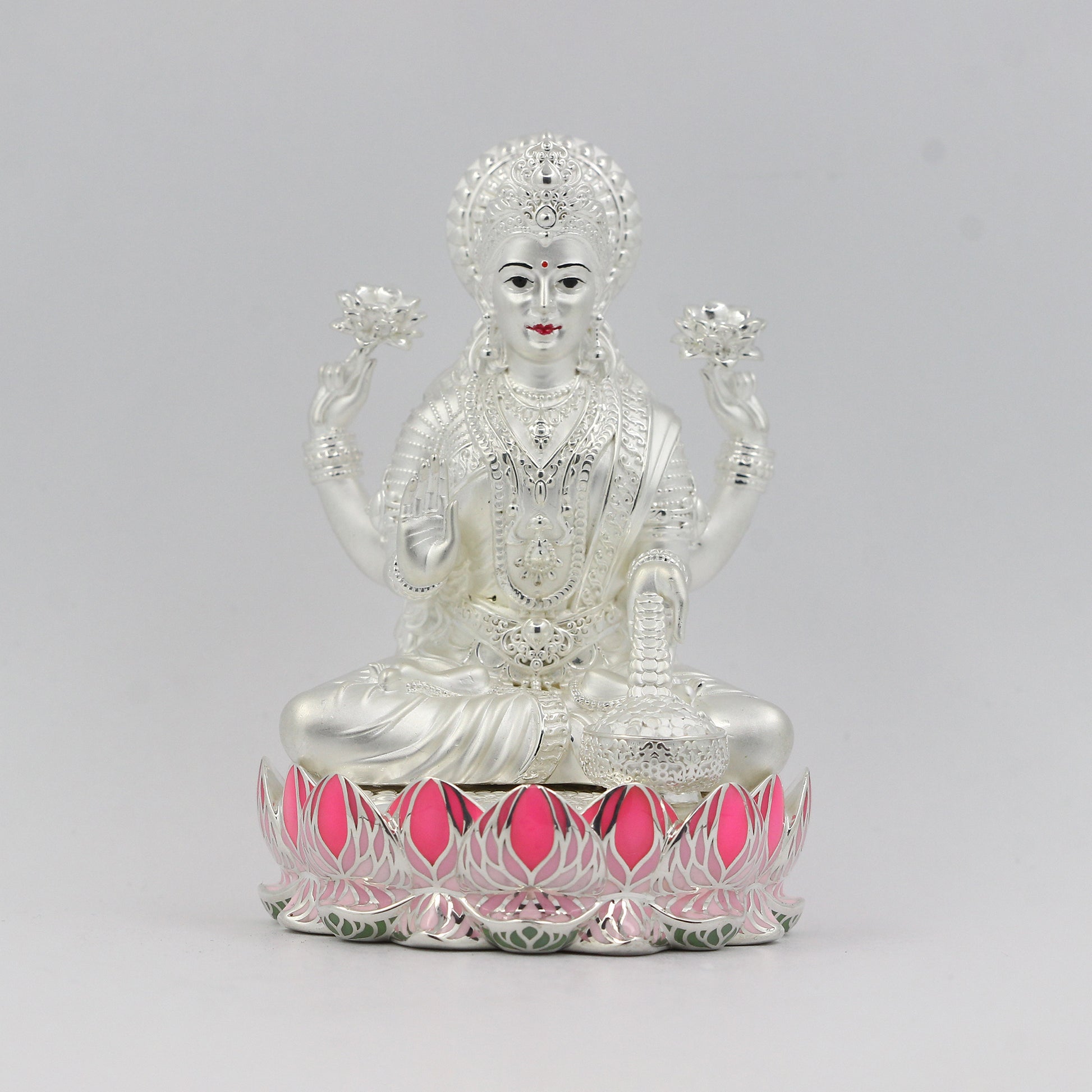 Silver Premium Matte Lotus Base Lakshmi with Enamel
