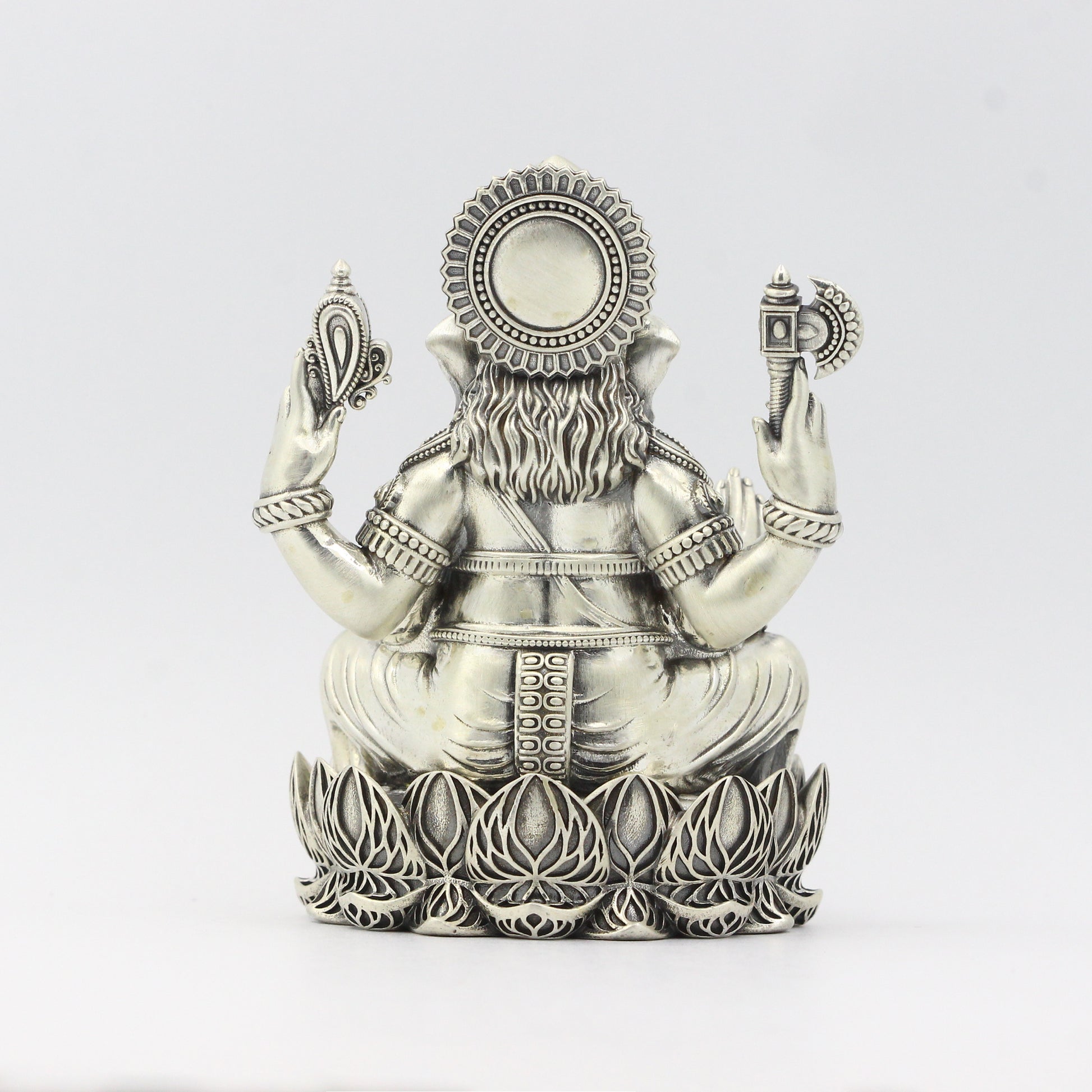 Welcome auspiciousness and divine blessings into your space with this beautifully crafted Ganesh idol, gracefully seated upon a vibrant lotus base. The figure of Lord Ganesh—remover of obstacles and harbinger of prosperity—radiates wisdom, positivity, and spiritual strength. Every detail, from the serene expression to the dynamic posture, captures the essence of devotion and abundance.
